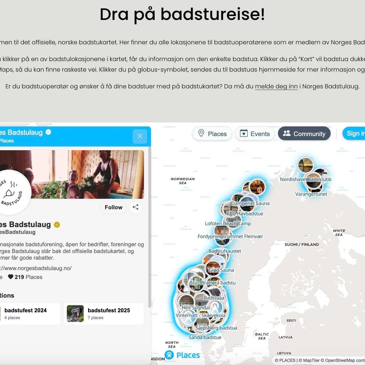 Det finnes flere hundre offentlig tilgjengelige badstuer i Norge. Mange er arkitektoniske perler, omgitt av vakker natur. I badstukartet kan du finne en badstue nær deg, eller planlegge en skikkelig badstureise gjennom Norge.